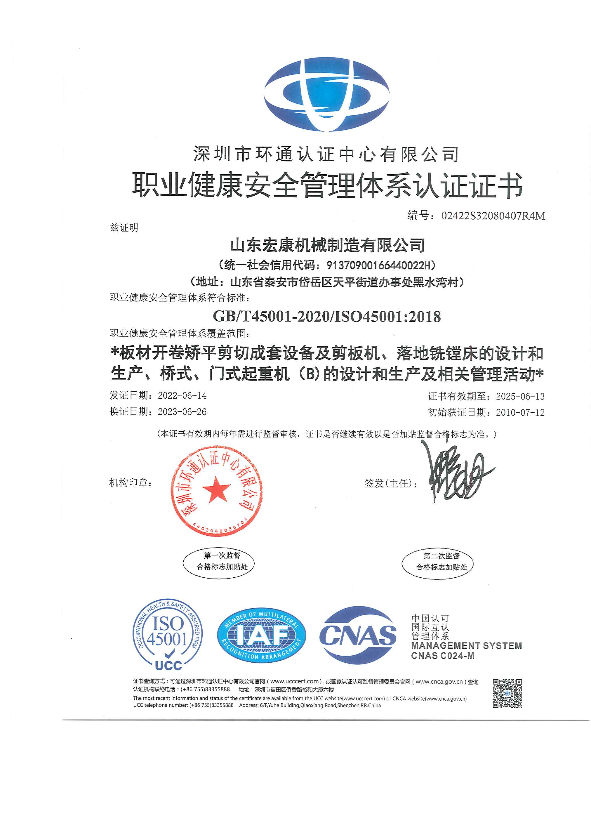 摘要 : 職業健康安全管理體係認證證書