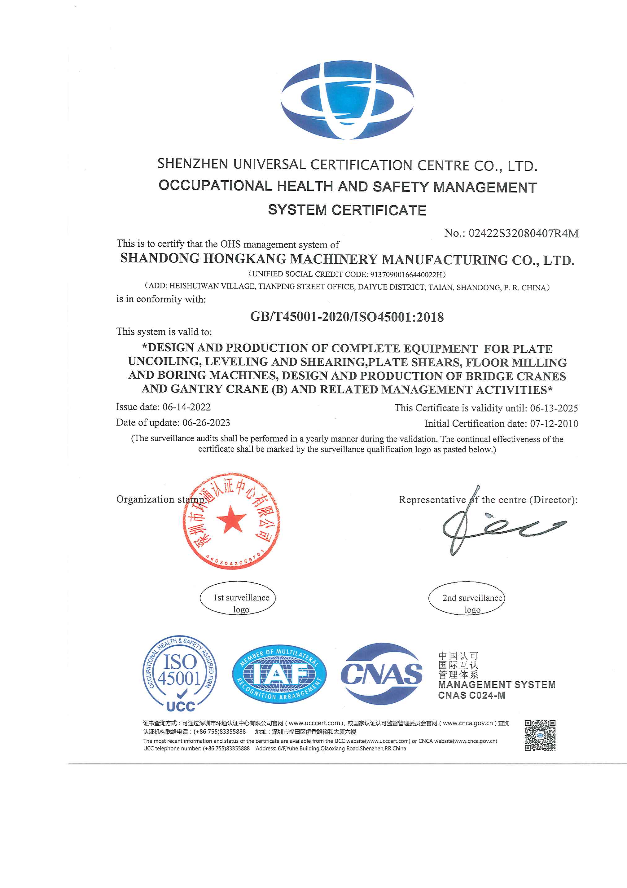 職業健康安(ān)全管(guǎn)理體係認證證書