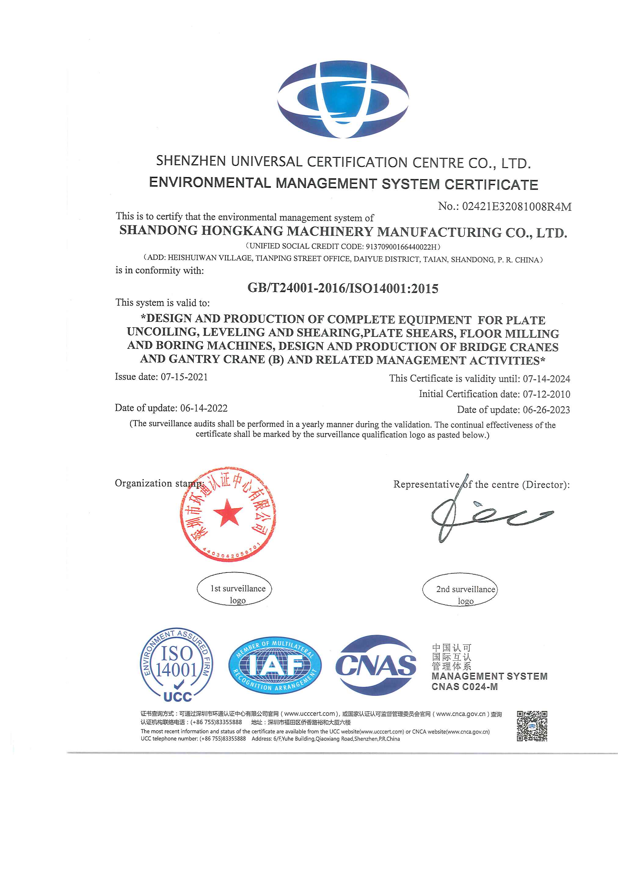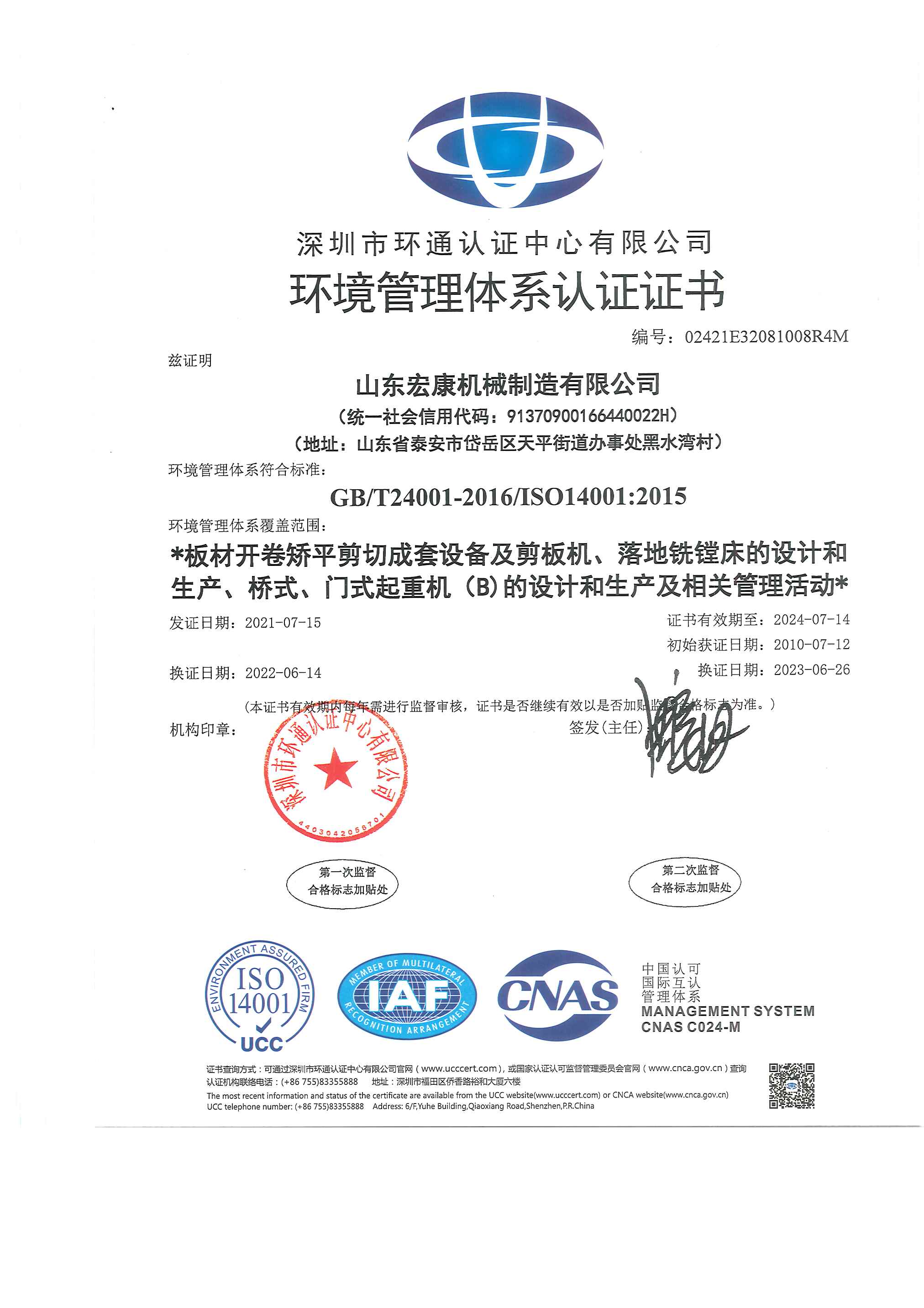 環(huán)境管(guǎn)理體(tǐ)係(xì)認證證書